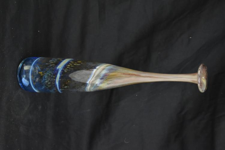 Lot 1263 of 2475: MICHAEL HARRIS FOR ISLE OF WIGHT GLASS; a contemporary art glass bottle vase with internal mottled and linear decoration, bears original label to the underside, height 41cm.