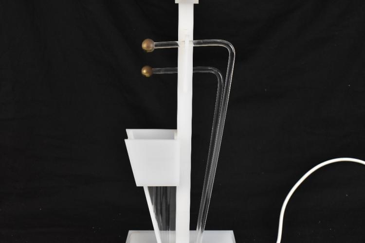 Lot 1297 of 2475: MOSS LAMP; an American plexiglass table lamp in the Art Deco style with applied gilt metal balls, height 83cm. Footnote: A similar example is featured on P104 of The Moss Lamps Lighting 1950s book by A Scheiffer. Originally purchased by the vendor in America in the 1970/80s.