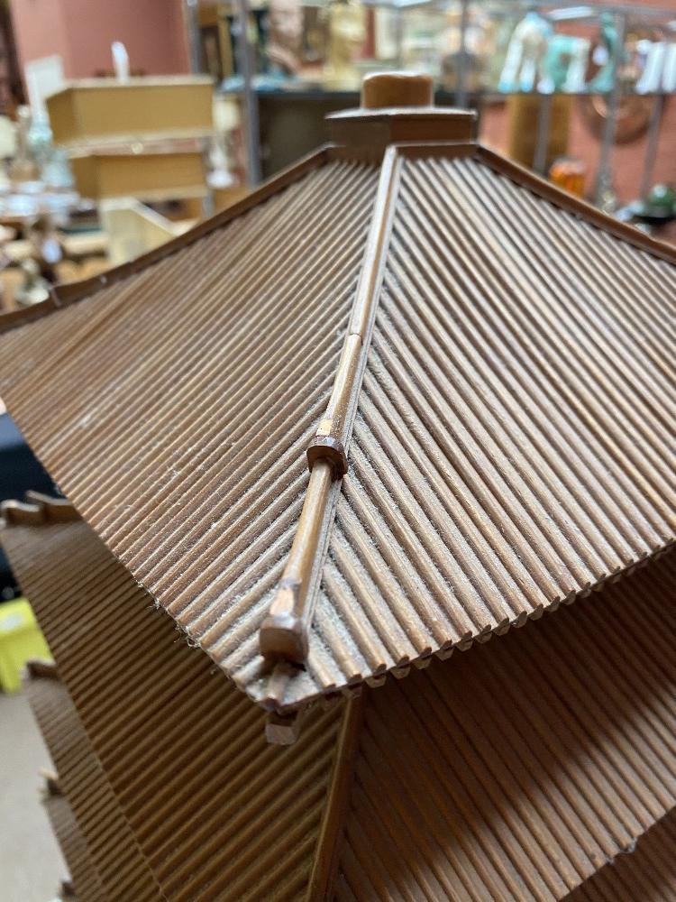 Lot 1396 of 2475: A Japanese sandalwood model of a six sectioned pagoda on square sectioned base, height 54cm.