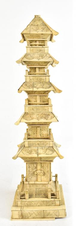Lot 1397 of 2475: An early 20th century Japanese bone pagoda, height 48cm (af).