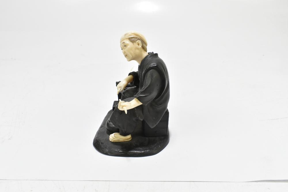 Lot 1402 of 2475: A Japanese Meiji period bronze and ivory okimono depicting a seated gentleman holding an arrow, height 12cm.