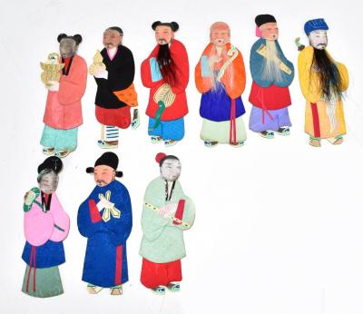 Lot 1408 of 2475: Nine early/mid-20th century Japanese Tachi-e paper puppets depicting Immortals, four featuring real hair beards, length of each approx 19.5cm (9).