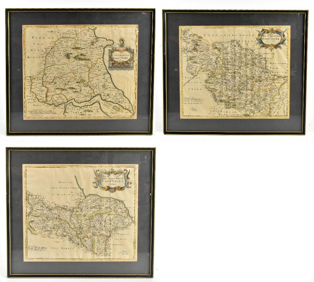 Lot 2009 of 2475: ROBERT MORDEN; three maps of the Yorkshire Ridings, average size 36 x 43cm, each framed and glazed (3).