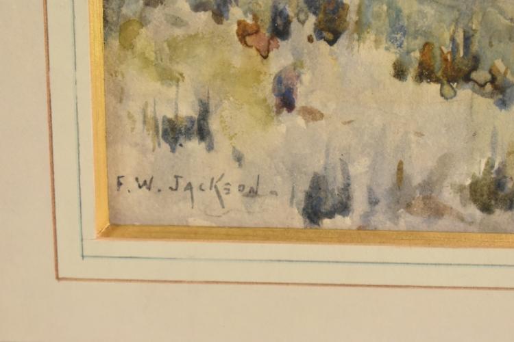 Lot 2054 of 2475: FREDERICK WILLIAM JACKSON (1859-1918); watercolour, 'Strand on the Green, Chiswick', signed lower left, 17 x 24.5cm, framed and glazed.