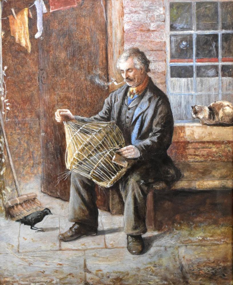 Lot 2058 of 2475: GEORGE PERKINS OF MANCHESTER; watercolour, seated old man with birdcage, signed lower left and dated 1877, 40 x 33cm, in glazed gilt frame.