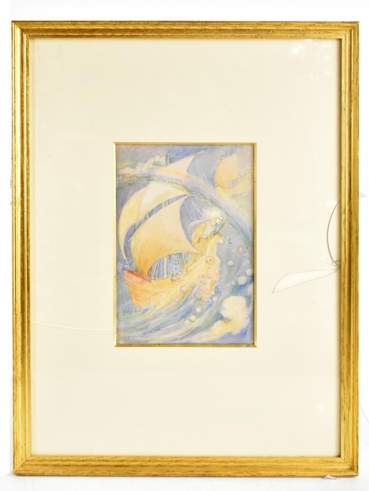 Lot 2064 of 2475: EMMA FLORENCE HARRISON (fl. 1877-1925); watercolour, 'Sometimes we Drift when Showers Lift, A Fairy-Splendored Bow', signed lower left, 26 x 18cm, framed and glazed.
