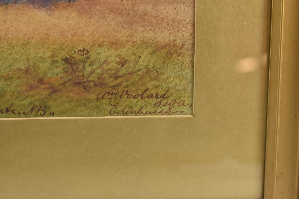 Lot 2066 of 2475: WILLIAM WOOLARD (Scottish fl. 1883-1908); watercolour, 'Evening Kingarth Church, Kinchattan Bay, Isle of Bute', signed and titled, 26.5 x 36.5cm, framed and glazed. Provenance: Private collection in Devon.