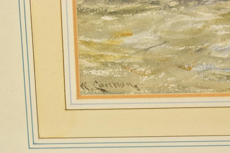 Lot 2071 of 2475: WILLIAM CANNON; a pair of 19th century watercolours, shipping scenes, 13 x 29cm.