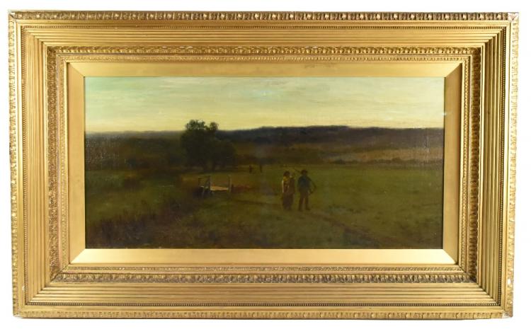 Lot 2099 of 2475: LEOPOLD RIVERS (1850-1905); oil on canvas, 'In the Glooming', signed lower right, 44 x 89cm, framed and glazed.