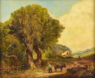 Lot 2102 of 2475: JOHN CROME (1768-1821); oil on canvas, rural landscape with figure in foreground and a cottage beyond, apparently unsigned, 30 x 35cm, framed.