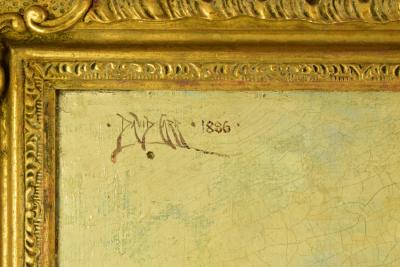 Lot 2109 of 2475: DAVID CARR; oil on canvas, a seated young girl with her dead canary, the cage lying on the floor by her feet, signed top left and dated 1886, 80 x 55cm, in pierced gilt frame.
