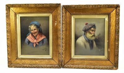 Lot 2121 of 2475: R CORSI; a pair of oils on canvas, a bearded old man smoking a pipe and an old woman smiling, both signed, 24 x 19cm, framed and glazed.