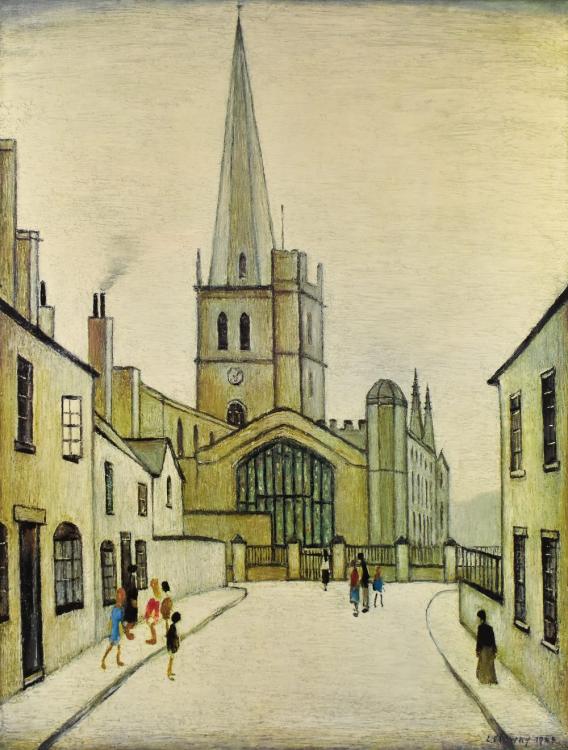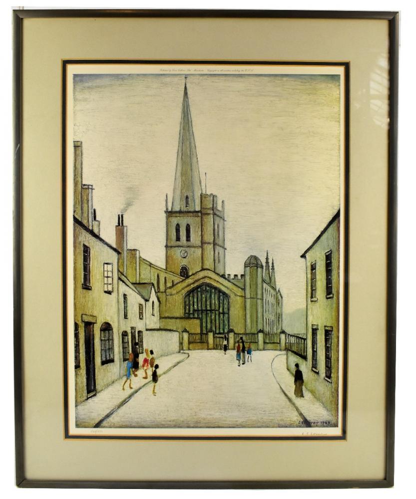 Lot 2131 of 2475: LAURENCE STEPHEN LOWRY RBA RA (1887-1976); a pencil signed limited edition print, 'Burford Church', published by Grove Galleries Ltd Manchester, 63 x 47cm, framed and glazed. (D)