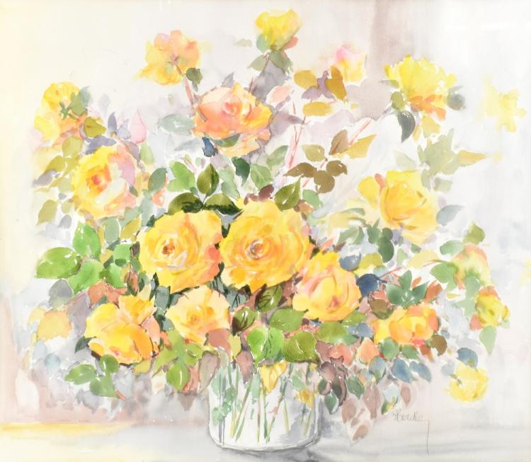 Lot 2391 of 2475: E BRADLEY; a set of three watercolours, still life studies of flowers, each signed, 51 x 66cm, framed and glazed. (D)