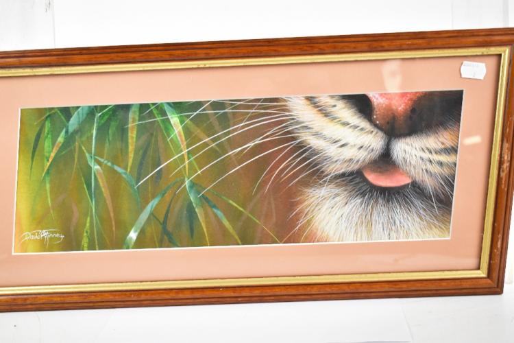 Lot 2397 of 2475: DAVID A FINNEY; a triptych of watercolours representing a tiger's head, one example signed, average size 15 x 46cm (3). (D)