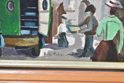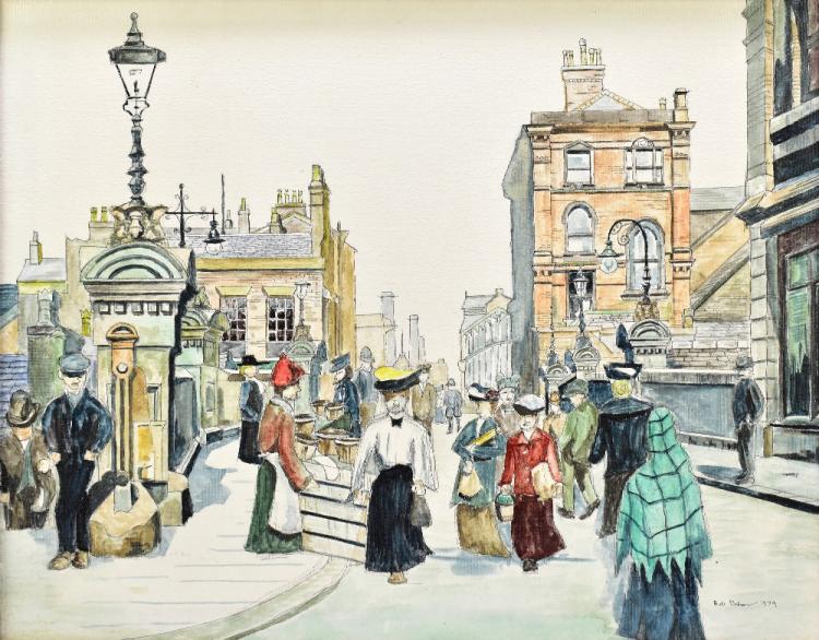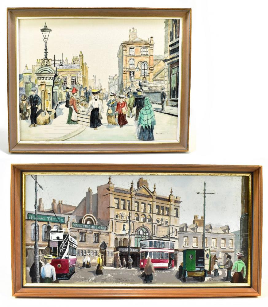 Lot 2521 of 2475: BOB PARKER; oil on canvas, figures in Victorian street scene, signed and dated 1979 lower right, 51 x 40cm, together with a similar smaller example by the same artist (2). (D)