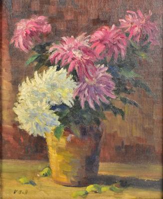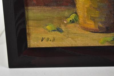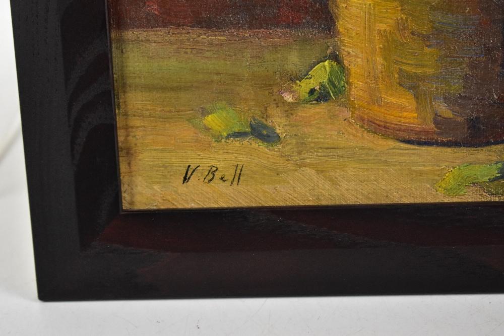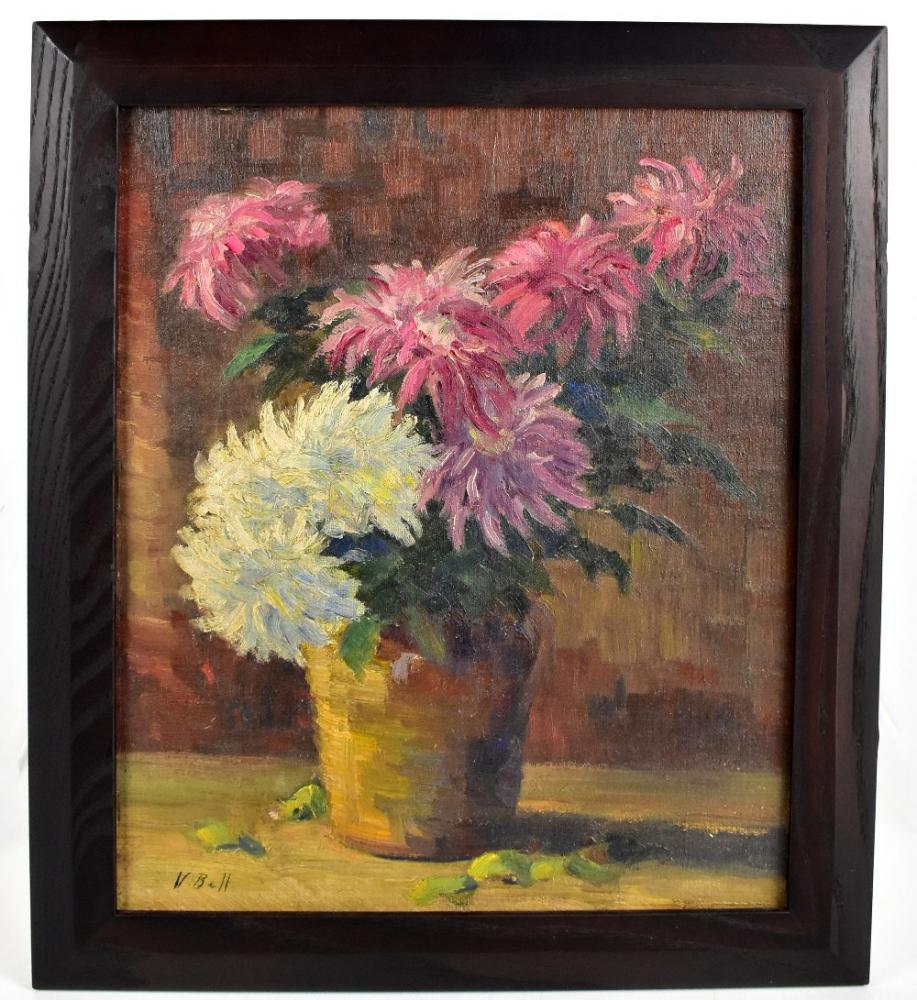 Lot 2524 of 2475: V BELL; oil on canvas board, still life study of vase of flowers, bearing signature lower left, 40 x 32cm. (D) Provenance: private collection London.