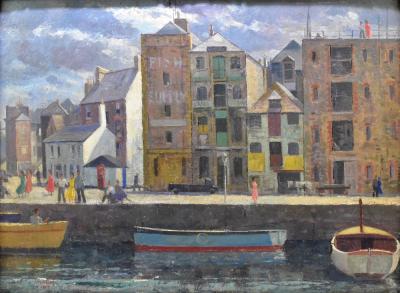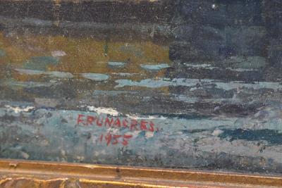 Lot 2526 of 2475: FRANK RUNACRES (1904-1974); oil on board, a harbour scene, signed and dated 1955 lower left, 45 x 60cm, framed. (D)