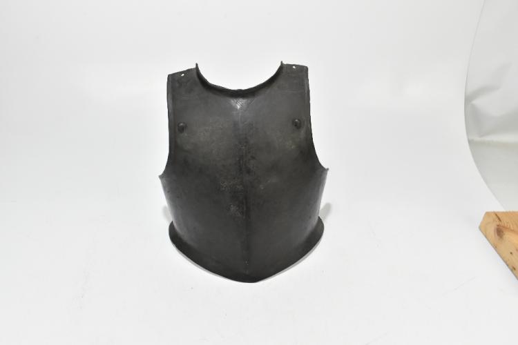 Lot 18 of 1434: An English Cromwellian/Civil War period chest guard of heavy gauge bearing traces of chased detail, 31 x 31cm. Provenance: The Captain Allan Marshall Collection.