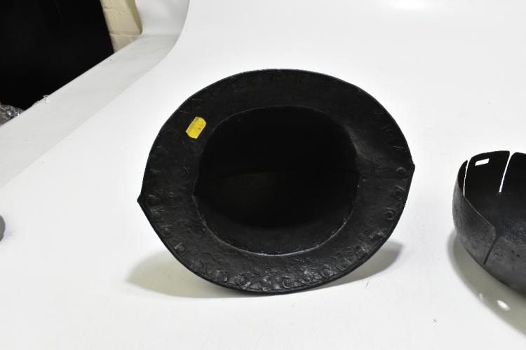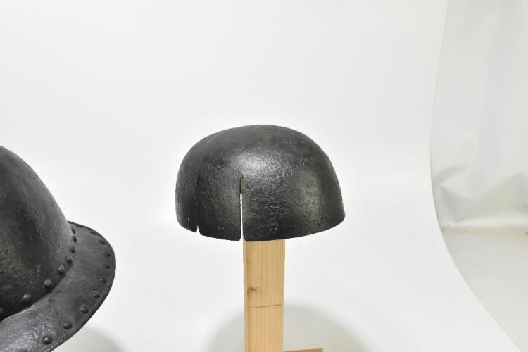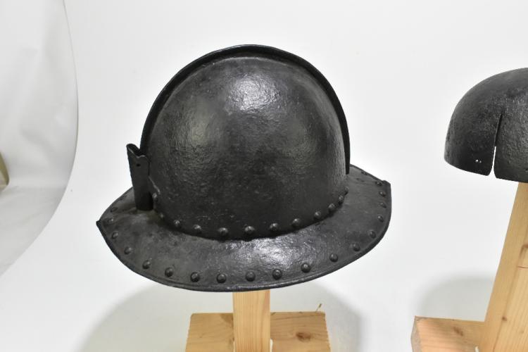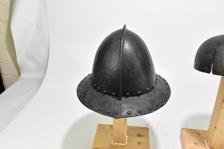 Lot 27 of 1434: An English Civil War/Cromwellian period pikeman's pot helmet, internal aperture approx 20 x 18cm, and a liner/skin for a helmet (2). Provenance: The Captain Allan Marshall Collection, the former purchased from Garth Vincent Antiques Arms & Armour in 2010.