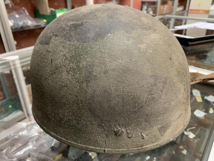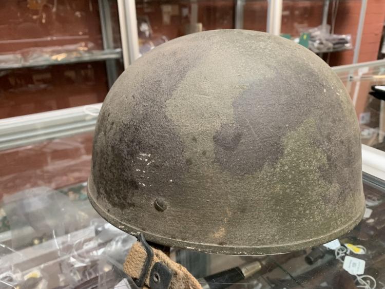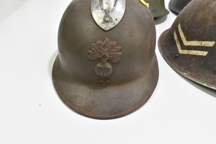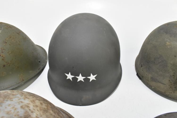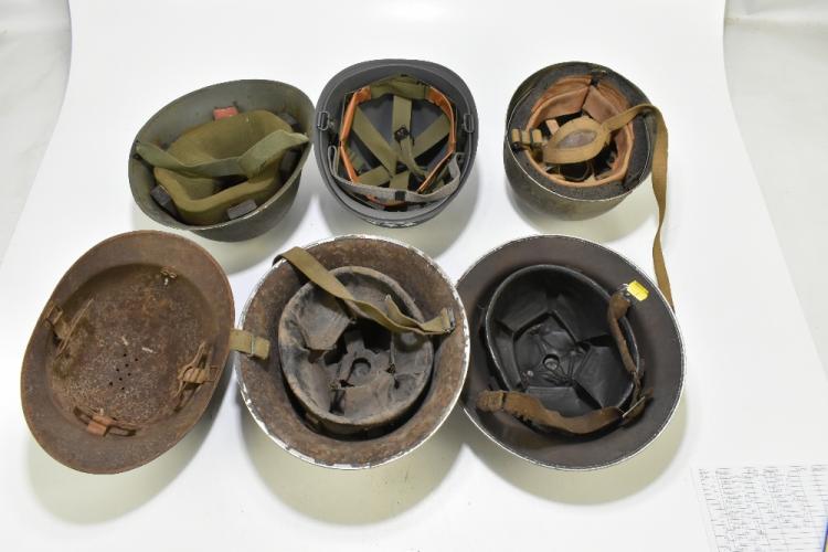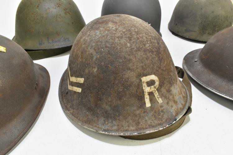 Lot 31 of 1434: Six WWII and later helmets including a Brodie, American, French, further example labelled 'R' with chevrons, etc (6). Provenance: The Captain Allan Marshall Collection.