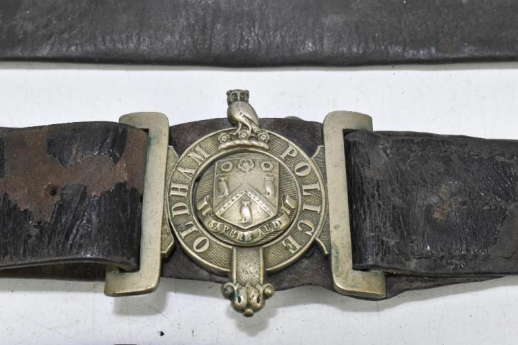 Lot 40 of 1434: Five leather belts including three Police examples for Rochdale Borough Constabulary, Oldham Police and City of London Police (5). Provenance: The Captain Allan Marshall Collection.