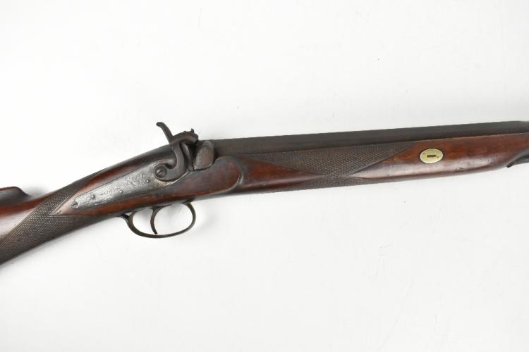 Lot 213 of 1434: ROSS; a 19th century percussion cap musket with part octagonal 40" barrel, the lock plate inscribed with the maker's name within simple foliate scrolls and mounted on a checkered walnut stock fitted with brass and steel furniture, overall length 143cm. Provenance: The Captain Allan Marshall Collection.