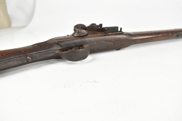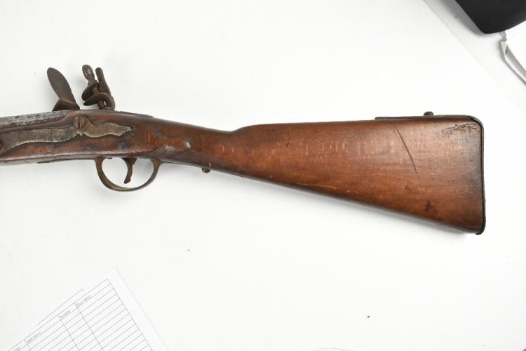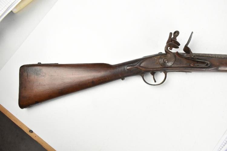 Lot 216 of 1434: A 19th century flintlock long barrelled musket, fitted with full-length stock and steel furniture, no maker's marks visible, although there are two indistinct proof marks to the barrel, overall length 164cm. Provenance: The Captain Allan Marshall Collection.