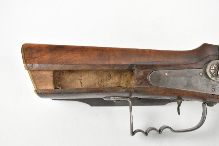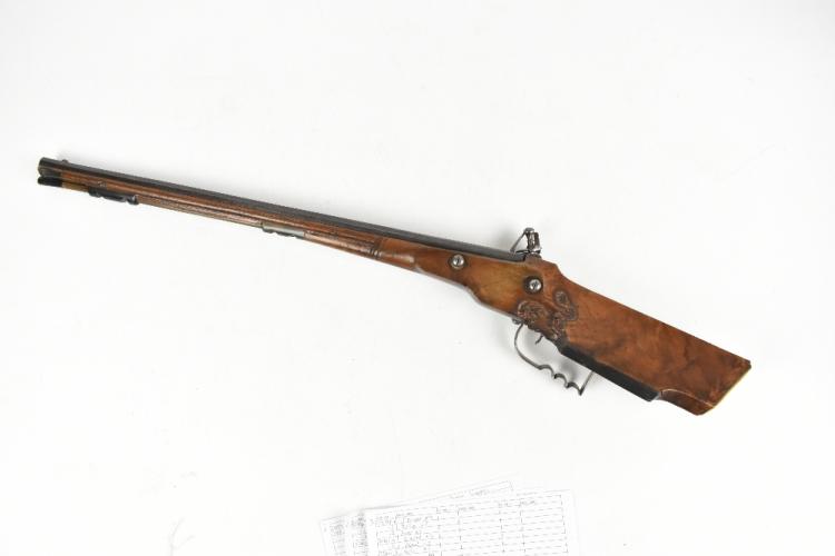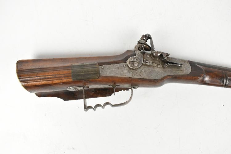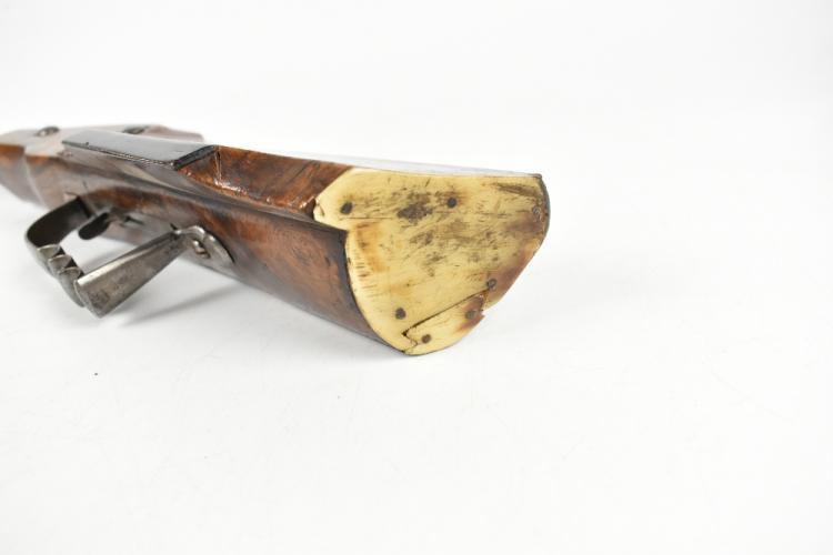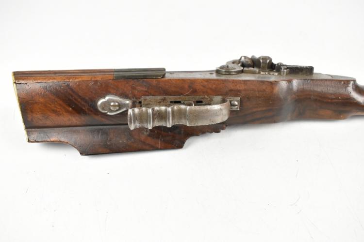 Lot 218 of 1434: An unusual small bore flintlock musket with short carved stock with ivory butt plate and sliding compartments, fitted with 21" hexagonal barrel, overall length 78cm. Provenance: The Captain Allan Marshall Collection.