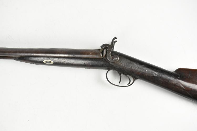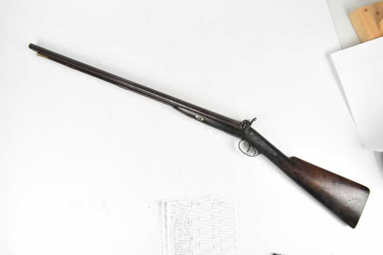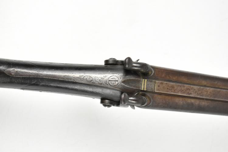 Lot 219 of 1434: AKRILL; a late 19th century 12 bore side-by-side percussion cap hammer gun, fitted with steel furniture and checkered walnut stock, length of barrel 30", overall length 116cm. Provenance: The Captain Allan Marshall Collection.