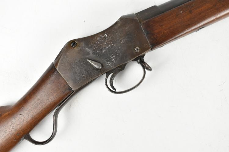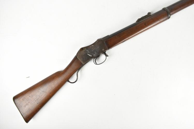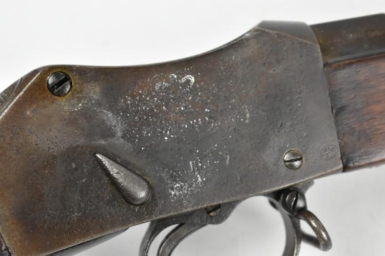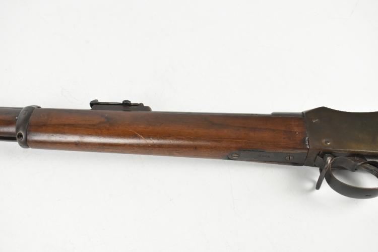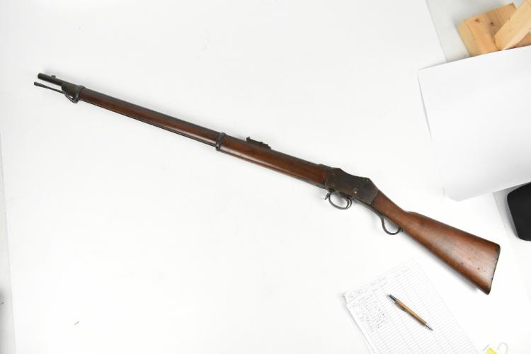Lot 222 of 1434: ENFIELD; a Martini-Henry 1872 pattern .577/.450 rifle, the barrel stamped with various proof marks and broad arrow above 'WD' with further double broad arrow marks, the lock further stamped 'VIC.GOV' and further stamps to the stock, overall length 126cm. Provenance: The Captain Allan Marshall Collection.