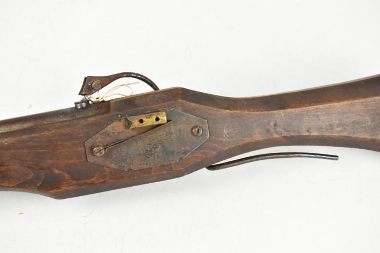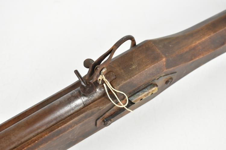 Lot 223 of 1434: A rustic matchlock rifle, probably restocked much later, overall length 110cm. Provenance: The Captain Allan Marshall Collection.