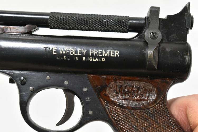 Lot 240 of 1434: A boxed Webley Premier .22 air pistol with bakelite grips, length 21cm, SN:965. Provenance: The Captain Allan Marshall Collection.