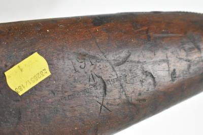 Lot 257 of 1434: W.W. GREENER; a WWI period dummy bayonet training rifle (lacking sprung loaded end section), the stock stamped '1915' above broad arrow and 'WW Greener Birmingham', overall length 117cm. Provenance: The Captain Allan Marshall Collection.