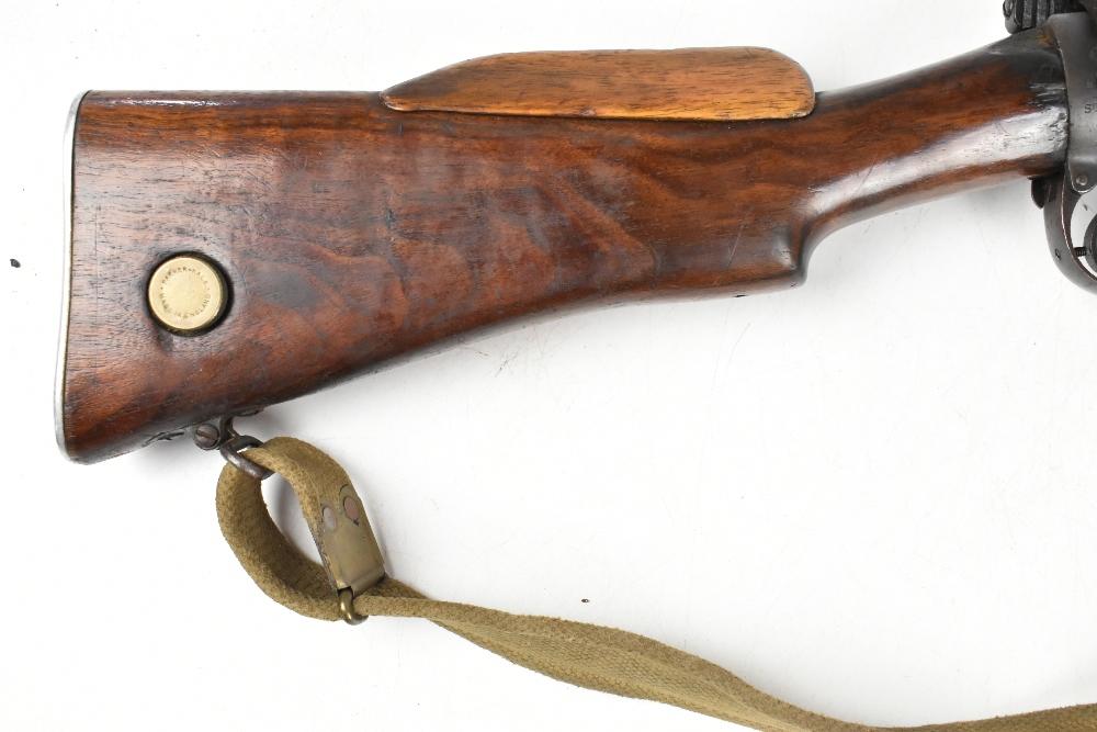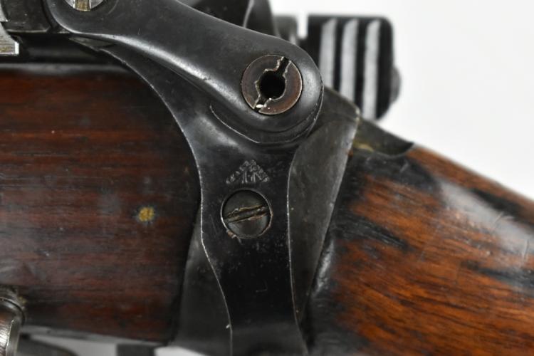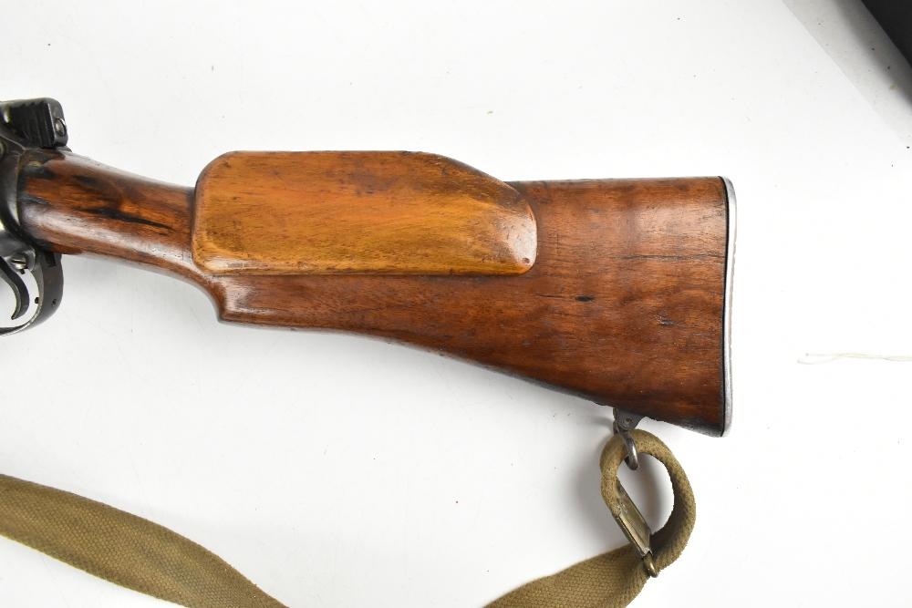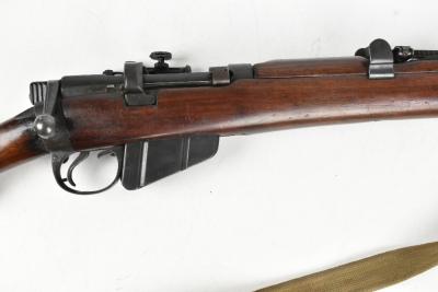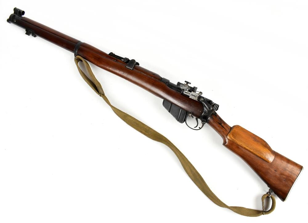Lot 270 of 1434: LEE ENFIELD; a .303 bolt action fully stocked rifle, the back strap stamped with a crown cipher above 'G.R.' also stamped 'B.S.A. Co 1917 SHT LE' and further stamped 'III' next to a small cog, the barrel stamped 'Parker-Hale Birmingham.4', various broad arrow stamps and proof marks to the side of the breech and mounted with a Bisley Works AGA folding mechanical sight, SN:81306. Provenance: The Captain Allan Marshall Collection.
