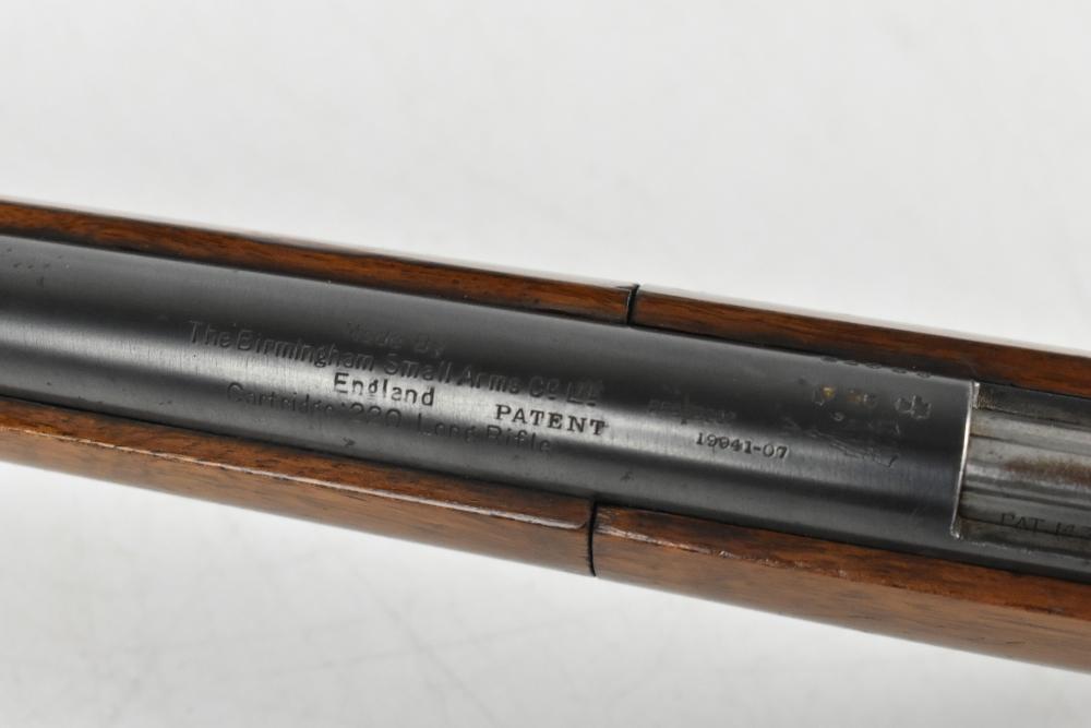 Lot 274 of 1434: BSA CO LTD; a .22 LR bolt action folding rifle, threaded for moderator, SN:22078. Provenance: The Captain Allan Marshall Collection.