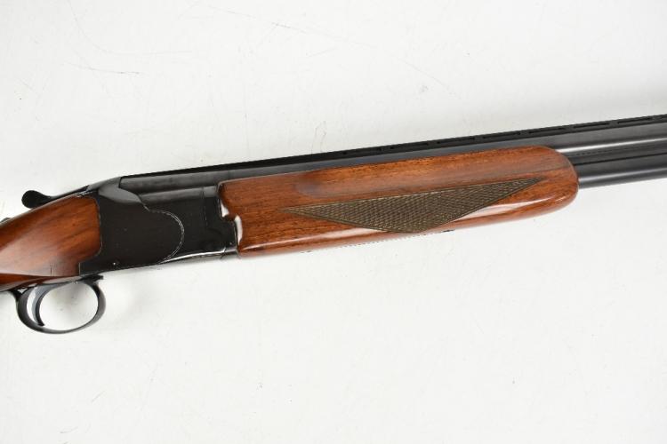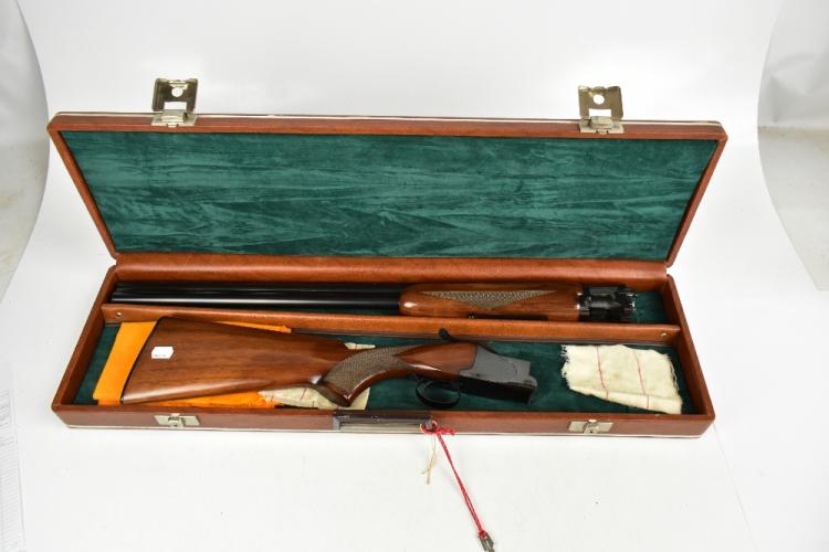Lot 281 of 1434: WINCHESTER; a model 99 12 bore over/under boxlock single trigger ejector shotgun, the 28” barrel with 2.75” chambers fitted with a vented rib, black action and checkered walnut stock, in Universal Breakdown leather gun case, SN:K376896.