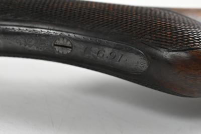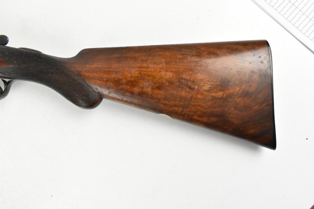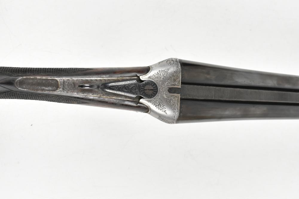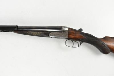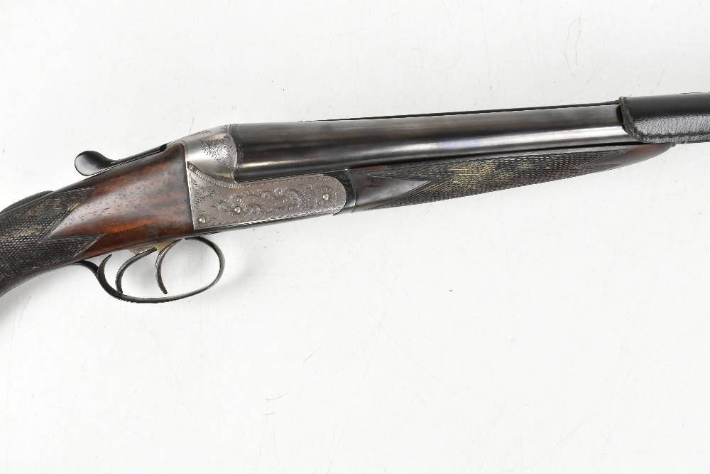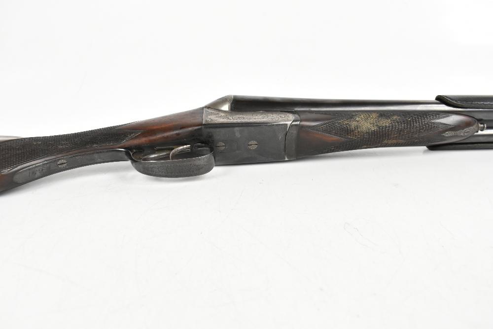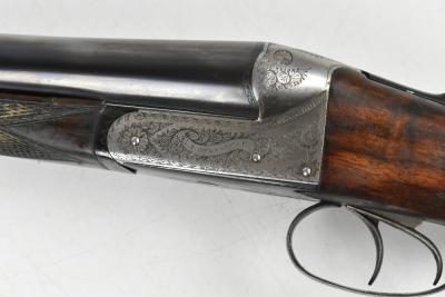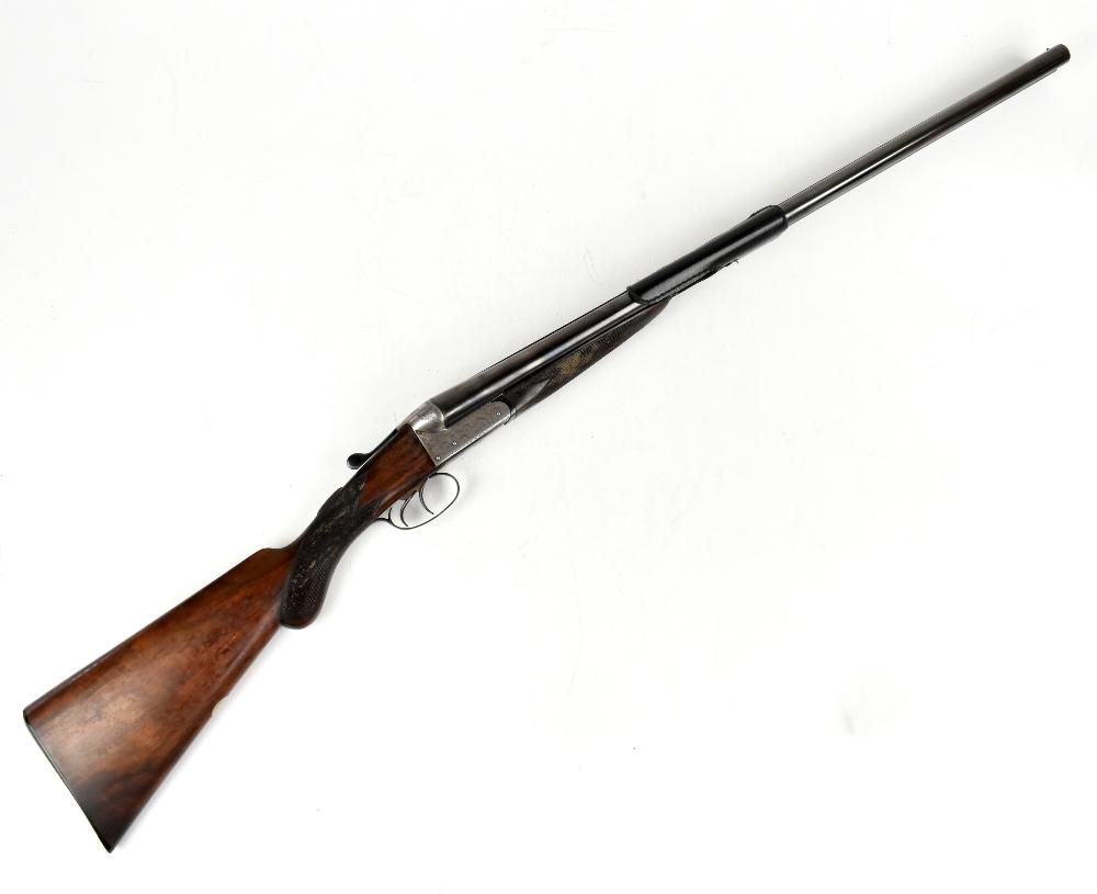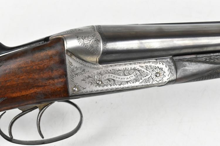 Lot 288 of 1434: T. STENSBY & CO; a 12 bore side-by-side boxlock double trigger non-ejector shotgun, the 28" sleeved barrels with 2.75" chambers mounted with a flat textured rib, the boxlock engraved with the maker's details on a banner and surrounded by foliate scrolls and mounted with a checkered walnut stock, serial number stamped to the trigger guard is C.691 however the barrels are stamped 63782 and the action is further stamped 2195, the flats of the barrels and the action bear various proof marks includin