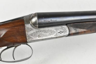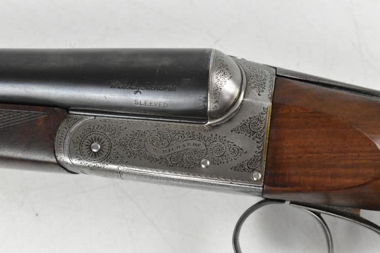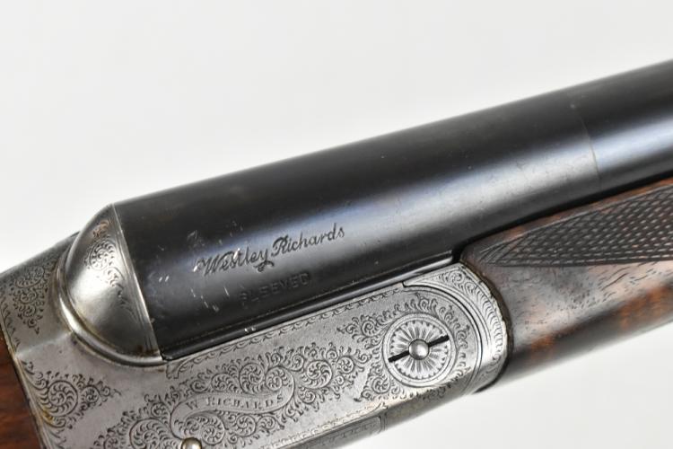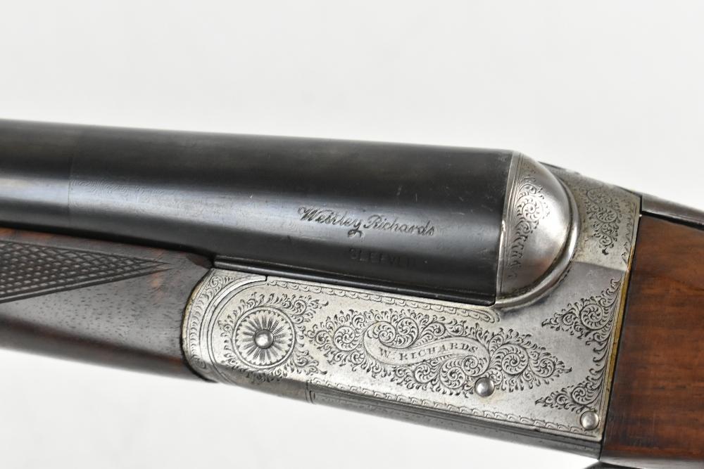 Lot 290 of 1434: W. RICHARDS; a 12 bore side-by-side boxlock double trigger non-ejector shotgun, the 28" sleeved barrels with 3.75" chambers and stamped 'Westley Richards', smooth concave rib, the action with foliate scrolls centred with a banner bearing the maker's name and fitted with a checkered walnut stock, SN:7250. Provenance: The Captain Allan Marshall Collection.