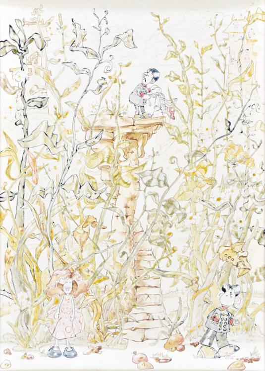 Lot 716 of 1434: CHARLES 'CHARLIE' SHIELS (1947-2012); ink and wash, figures in landscape, signed and dated '75 lower right, 35 x 24.5cm, framed and glazed. (D)