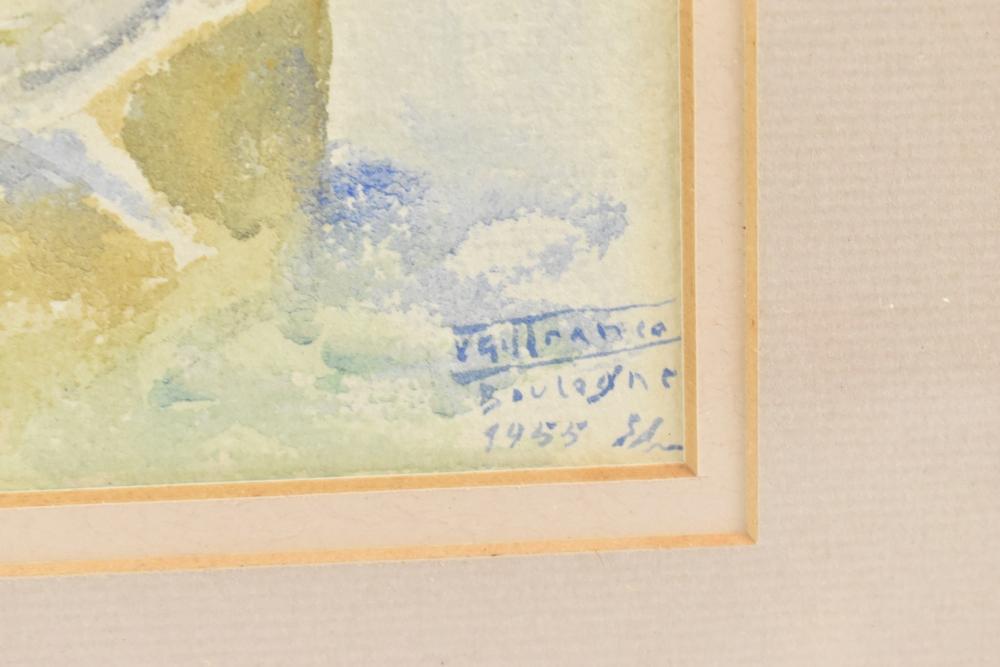 Lot 721 of 1434: V GILFRANCO; watercolour, kneeling figures, signed and dated 1955 lower right, 22 x 14.5cm, framed and glazed. (D)