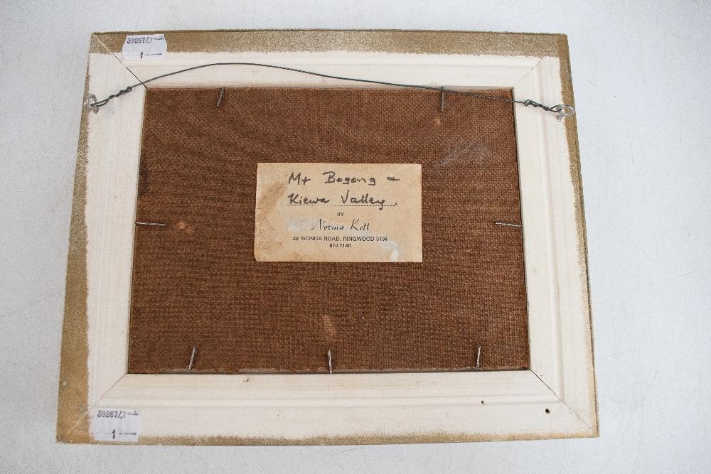 Lot 730 of 1434: NORMA KETT; oil on board, Kiewa Valley, signed lower right, bears label verso, 14 x 19.5cm, framed.