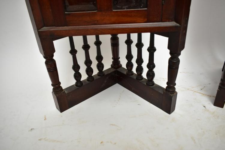 Lot 1209 of 1434: A pair of late 19th/early 20th century wall hanging corner cabinets each with glazed door enclosing single shelf, height 67cm, width 35.5cm (2).
