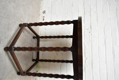 Lot 1244 of 1434: A 1920s stained oak circular occasional table, with bobbin turned legs on pentagonal base, height 66cm, width 62.5cm, with a 1920s oak hexagonal wall mirror, width 54.5cm (2).