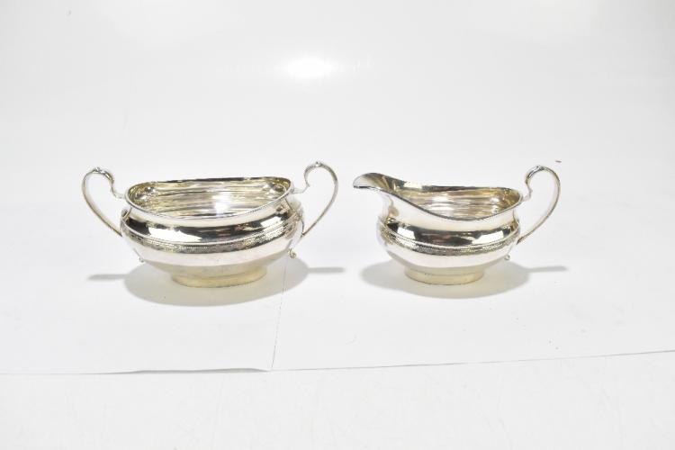 Lot 8 of 2356: VINERS LTD; an Elizabeth II hallmarked silver four piece tea set, each of oval form with chased detail to the lower body, Sheffield 1965, approx 54ozt/1693g.