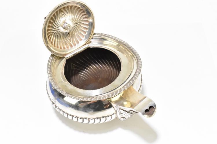 Lot 12 of 2356: JOHN HAWKINS; a George III silver teapot, with gadrooned rim, acanthus leaf moulded spout and demi-fluted detailing, ivory finial and ebonised handle, London 1811, height 10cm, weight approx 23ozt/723g.