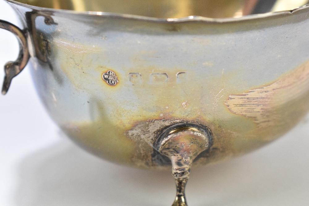 Lot 60 of 2356: LEVI & SALAMAN; an Edward VII hallmarked silver mug of baluster form with repoussé decoration surrounding a shaped cartouche with engraved initials E.N.C and dated 26th March 1888, Birmingham 1905, height 8cm, together with a hallmarked silver sauce boat raised on three hoof feet, approx weight 5.47ozt/170g.