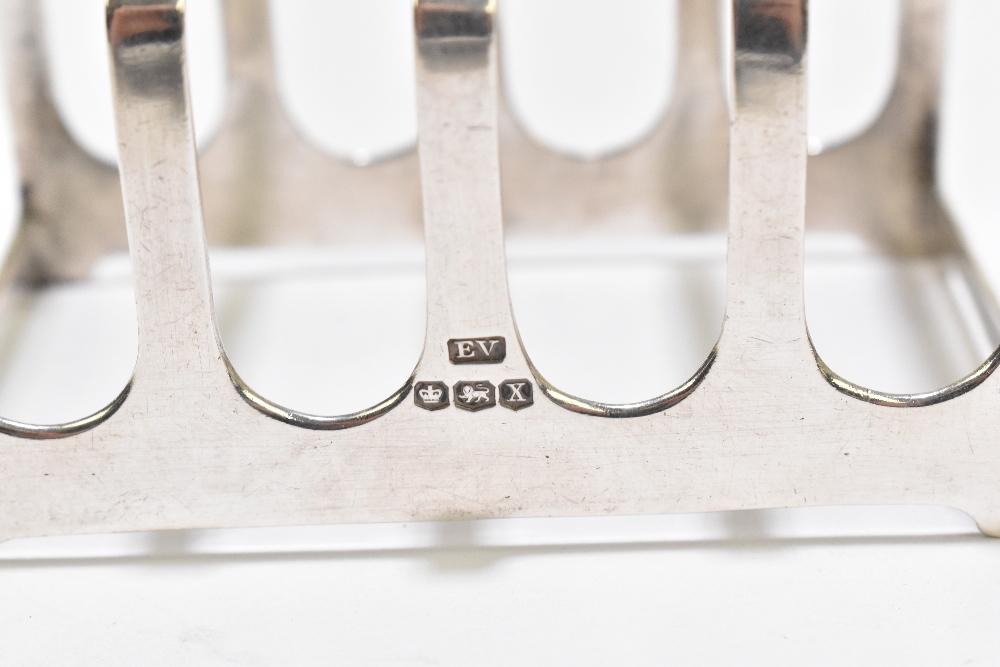 Lot 498 of 2356: ELKINGTON & CO LTD; a George V hallmarked silver toast rack set with five shaped uprights and central handle, Birmingham 1915, length 9cm, and a smaller hallmarked silver toast rack, combined approx. 6.5ozt/203g (2).