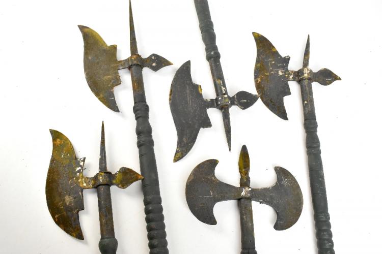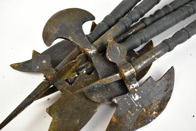 Lot 2108 of 2356: Five Medieval-style war axes, length approx 105cm, a stop/go sign and a wooden step ladder.