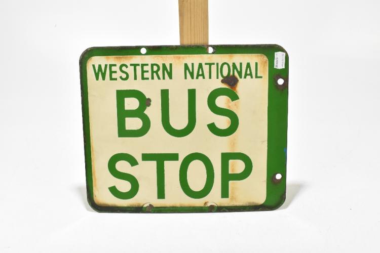 Lot 14 of 1211: An original double-sided enamelled sign 'Weston National Bus Stop', 26.5 x 32cm.